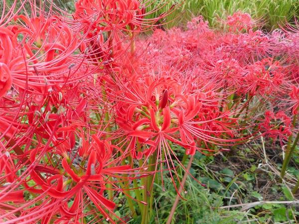 彼岸花は季節が来たら畔を赤く染めます