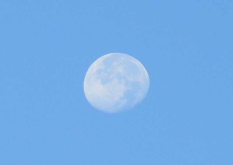 今朝の立ち待ち月、AM7時半西の空に浮かんでいました。