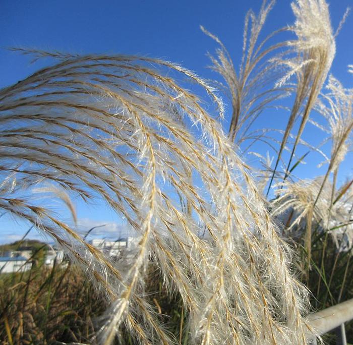 背景が真っ青な空にすすきがこんなにマッチするなんて!