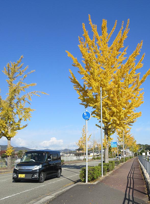 いいお天気で銀杏もさらに色づいてみえます。