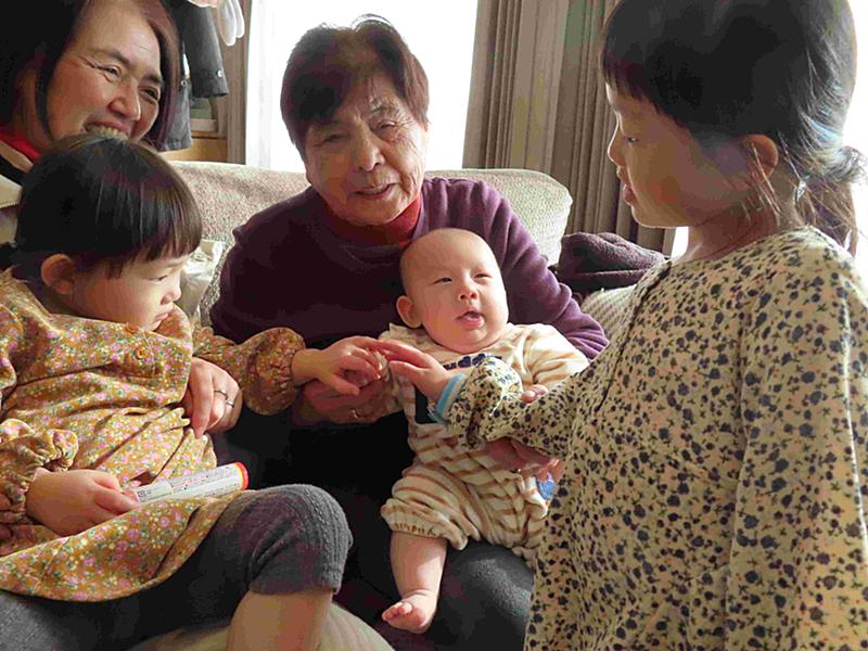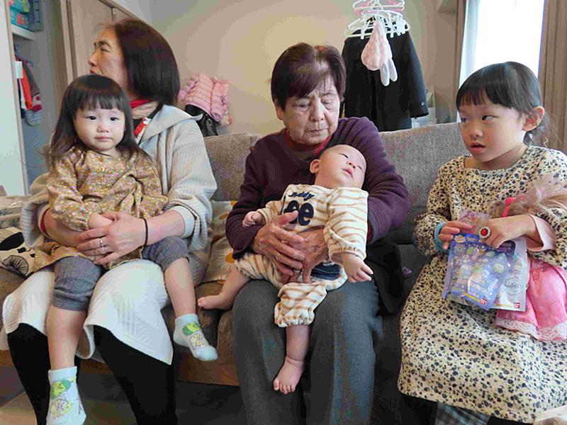 曾孫ちゃん3人に囲まれました