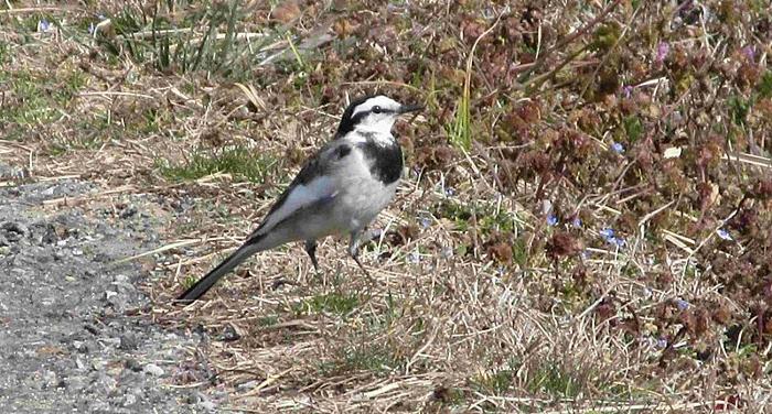 農道の畔にハクセキレイが降りてきました。そっとデジカメで撮りました