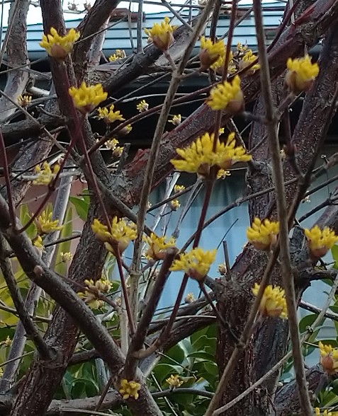 黄色のサンシュユも早春の花ですね。