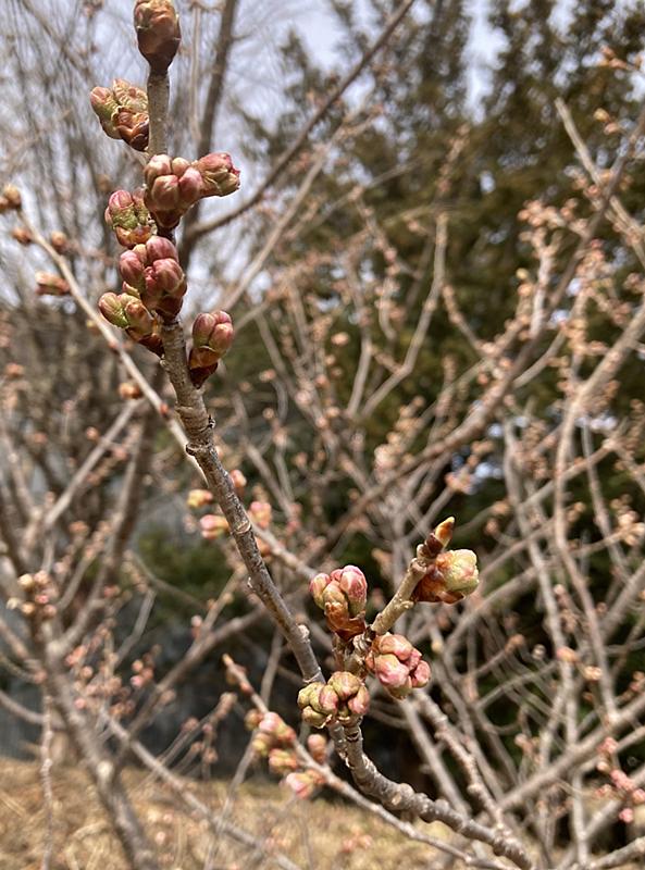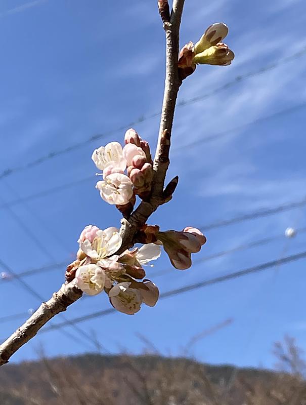 きょうの暖かさでさくらんぼの桜が開花し始めました。