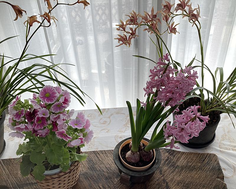冬の間もたくさんのお花を室内できれいに咲かせておられますね!
