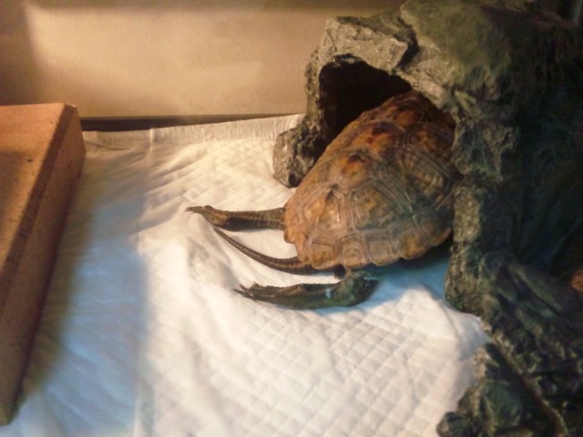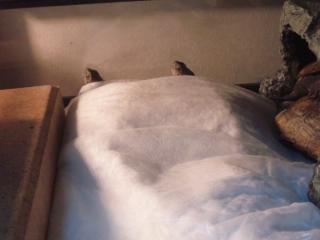 ペットシーツの中に潜るのが好きなカメ達。