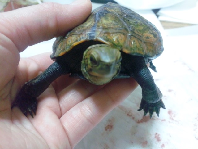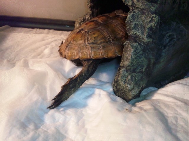 昨日、ユキくんの大事なとこが収まらず血を出しながら歩いていました(>_<) 引きずりながらなので気持ち悪いらしく、足で掻いてしまい、しっぽの付け根から出血していました。 ユキくんを持ち上げても、その部分をつついても引っ込まず、出勤時間が過ぎてもどうしようと慌てました。 手に乗せて半泣きになってしまいましたf^_^; カメを診てくれる病院を探して夕方に行くと伝えましたが、昼休憩に家へ戻ると、ユキくんの大事なとこが収納されていましたf^_^; 出血もとまっていました! 初めての事でかなり焦りました〜