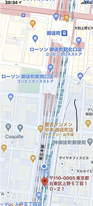 場所はJR御徒町駅南口から秋葉原方面に徒歩2分くらいの場所です。
